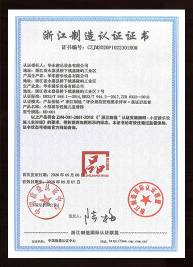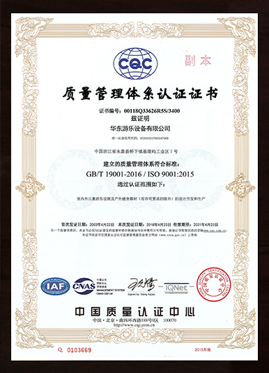 304am永利游乐的产品先后通过ISO国际质量管理、ISO环境管理、职业健康安全管理、安全生产标准化、知识产权管理体系、德国TUV、3C、SGS等国家和国际权威认证,公司先后被相关政府评为高薪技术企业、巨龙企业、知名商标、永嘉县“县长质量奖”、明星企业、高成长型企业等荣誉称号!