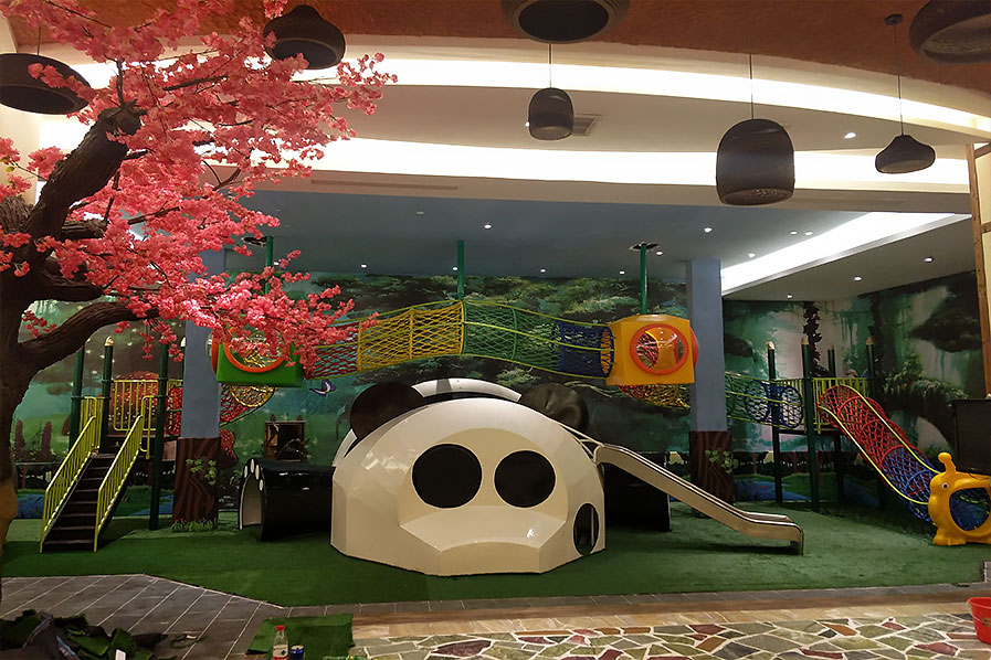 在未来,还会有更多的儿 童乐园在空间环境上做文章,让儿童乐园成为主体建筑中一道靓丽的风景线。从另外一个角度来看,空间环境,也是乐园设备的一种形态,不仅仅能愉悦孩子,也能通过充满新颖的设计氛围愉悦家长。所以,场地投资者如果 想在同城竞争中脱颖而出,提高自身儿童乐园的档次,区隔消费群体,那么,环境空间主题化的环境设计是必不可少的。