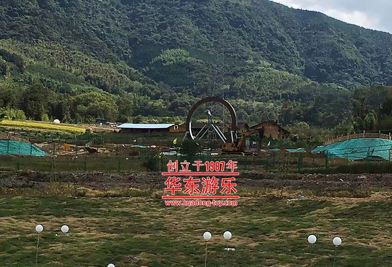 • 飞车秋千项目的设计融合了摩天轮、秋千、自行车三大主题相结合,人骑在自行车上来回摇荡,当您用力登上最高点时那种自上而下的感觉仿佛在飞翔,体验那种超重与失重状态下惊魂一刻的刺激,也可以感受一下那种仿佛要飞出轨道般的惊心动魄。
