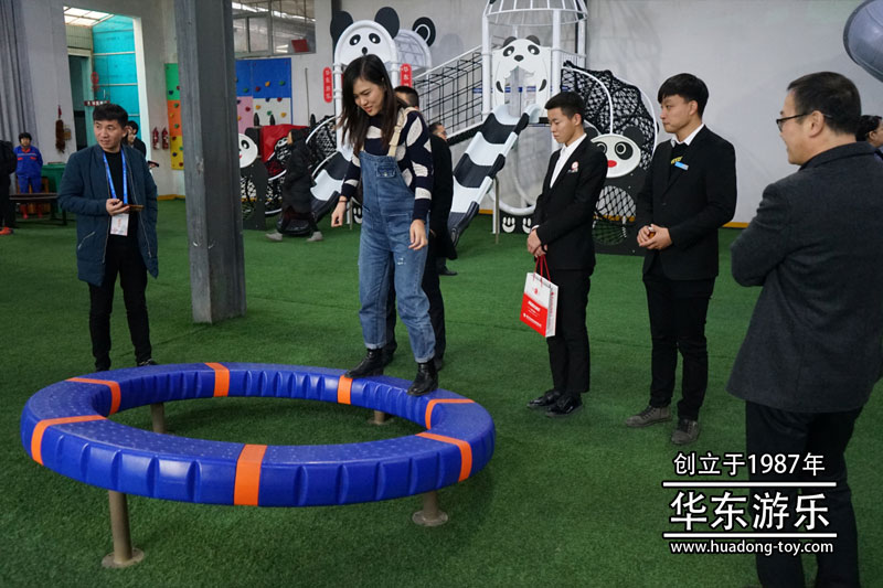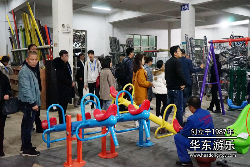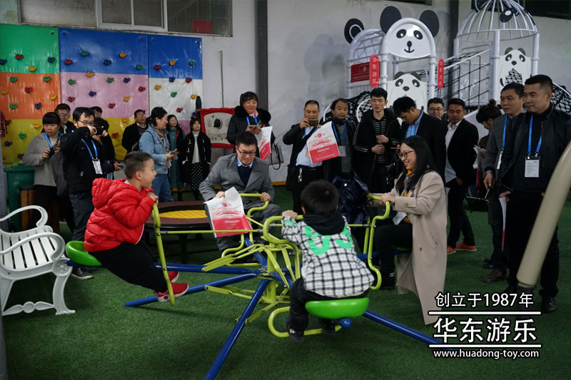 参观人员体验304am永利游乐生产的手动转椅