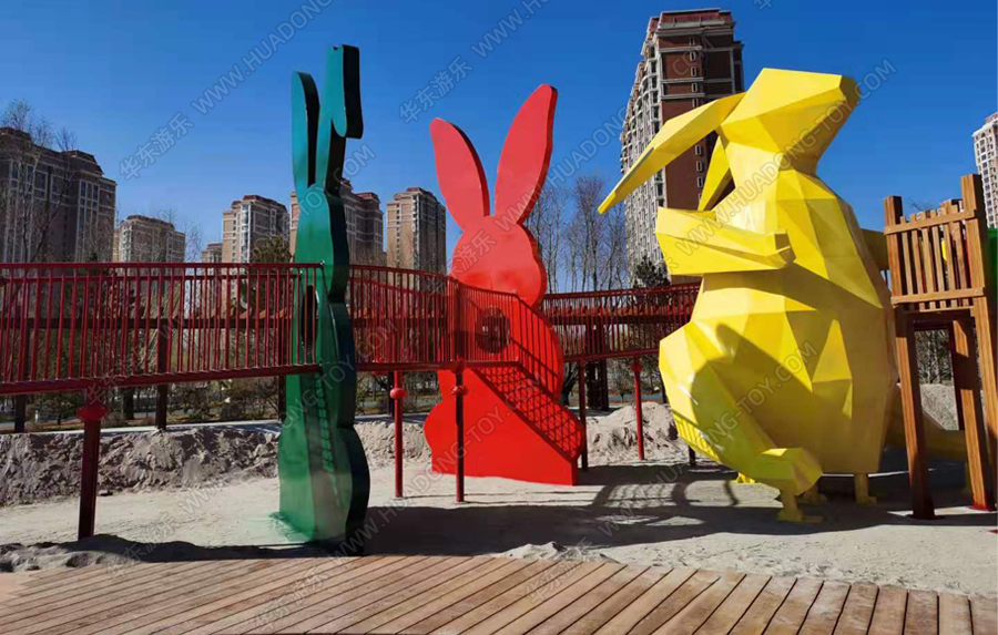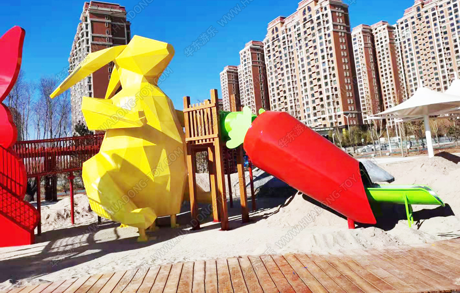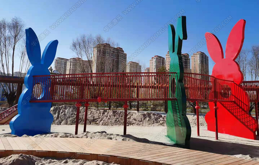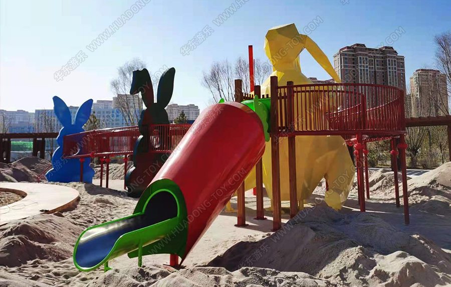 兔子乐园非标定制是304am永利游乐根据客户场地需求以及结合当地实际情况而设计的兔子主题乐园的游乐场,该游乐园具有主题鲜明,设计新颖,功能多样等特点,设计了滑梯组合、爬网、钻洞、沙池等游乐设备。