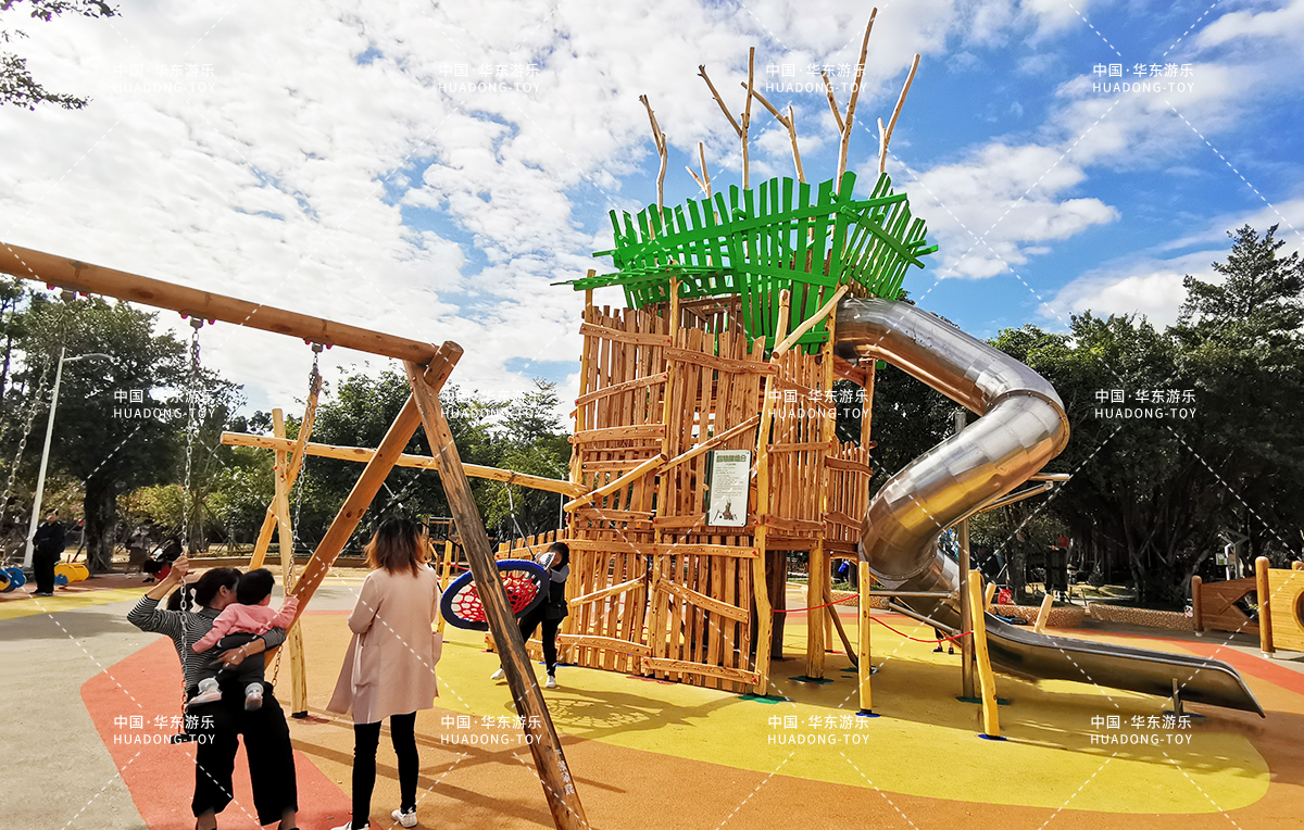 福州儿童主题公园项目是一个集生活、休闲、娱乐、遛娃为一体的综合性游乐场,该游乐场采用木质非标定制游乐设备,具备爬网、不锈钢滑梯、万能健身、秋千组合等功能,独特的木屋风格让人体验到大自然的神器与魅力。
