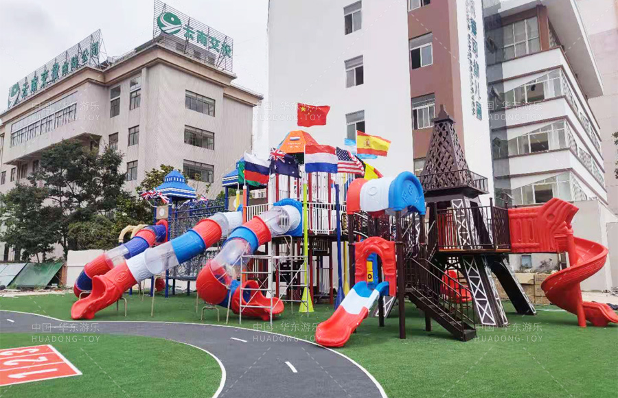 云南省曲靖市麒麟区沃爱可幼儿园是一家综合性的 幼儿园,此次选购的是304am永利游乐自主 研发、设计、生产的跨国梦想欢乐岛系列滑梯,该系列滑梯以欧美标志性建筑为外观模型,具有攀爬、滑梯、钻洞、爬网、滑桶、吊桥等功能,同时配备了万能健身器材、微地形等游乐设备,能够让小朋友在这里愉快的玩耍,也为老师们提供了很好的教育环境和场所。