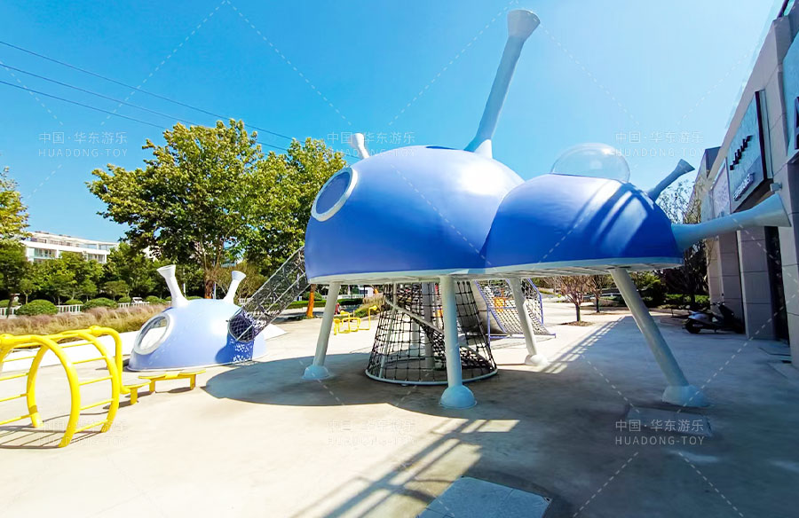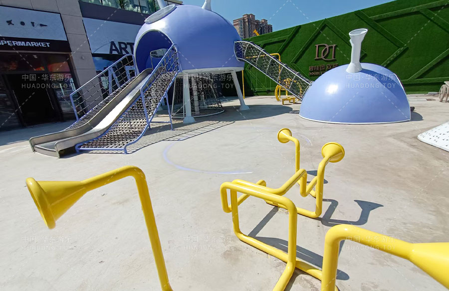 此次项目采用的是304am永利游乐自主设计的飞碟主题的游乐设备,新增了传声筒、爬网、儿童秋千、钻洞、不锈钢滑梯等功能。
