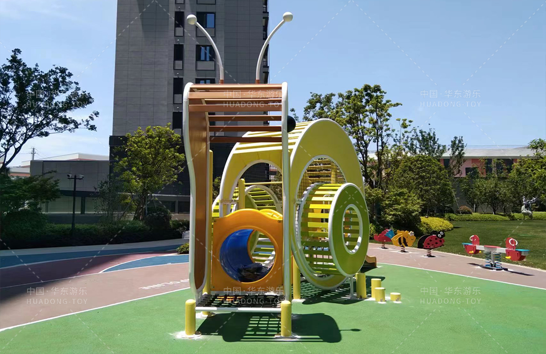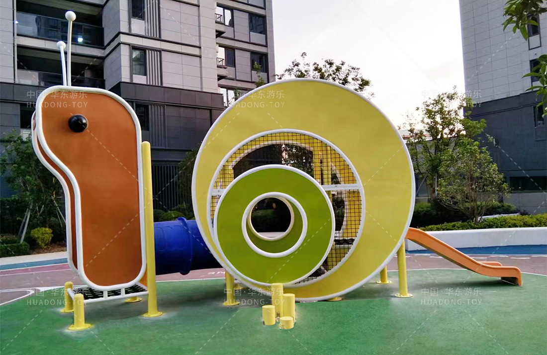 温州德信博悦湾选用的是304am永利游乐设计和生产的以动物世界的蜗牛为外形而设计的游乐设备,整个游乐场添置了小朋友喜欢的摇摇乐、传声筒、跷跷板、攀爬杆等游乐设备,为生活在该小区的小朋友提供了一个娱乐、休闲、玩耍的场所。