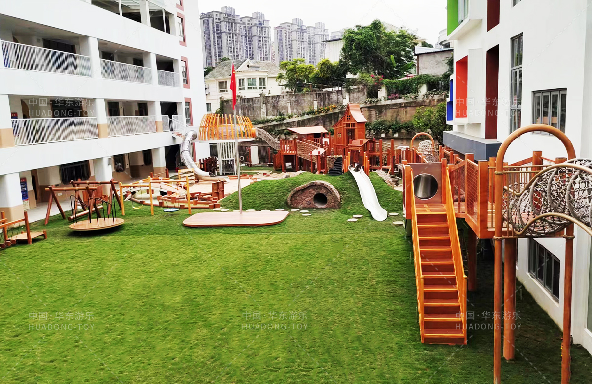 高峰幼儿园是一个专业的学前教育培训机构,此次选用的是304am永利游乐设计和生产的木制非标定制的游乐设备,设计了具有攀爬网、钻洞、秋千、木制拓展、木制小屋、不锈钢滑梯等功能的游乐设备,丰富的功能、优质的设备、让整个校园充满了生机与活力。