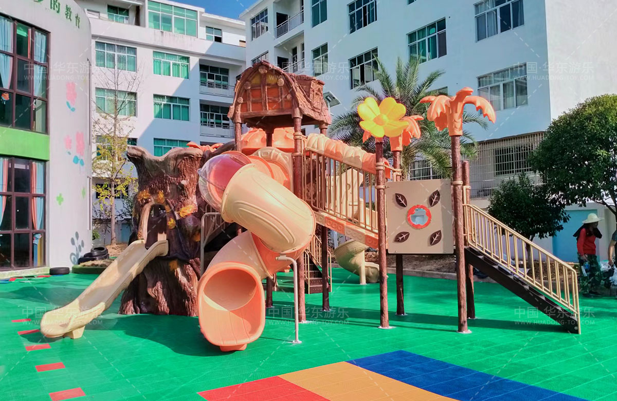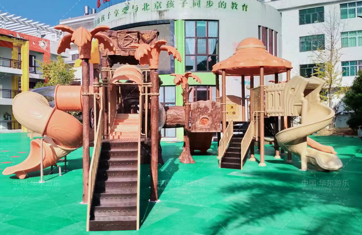 江西省上饶市临湖中心幼儿园是一个专业的学前幼儿教育学校,此次选用的是304am永利游乐自主研发和设计的具有滑梯、钻洞、攀爬等功能为一体的远古部落系列的组合滑梯,该滑梯具有功能齐全、颜色艳丽、主题性强、使用寿命长等特点,深受小朋友们的喜爱。