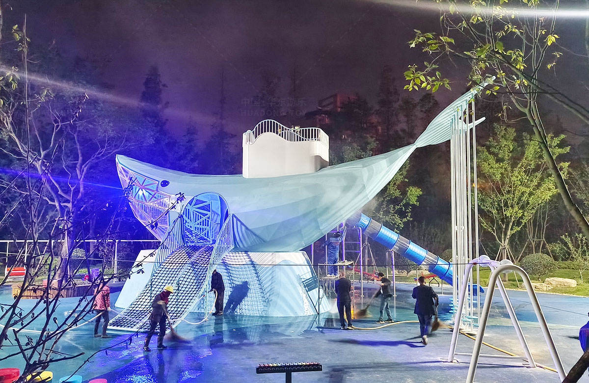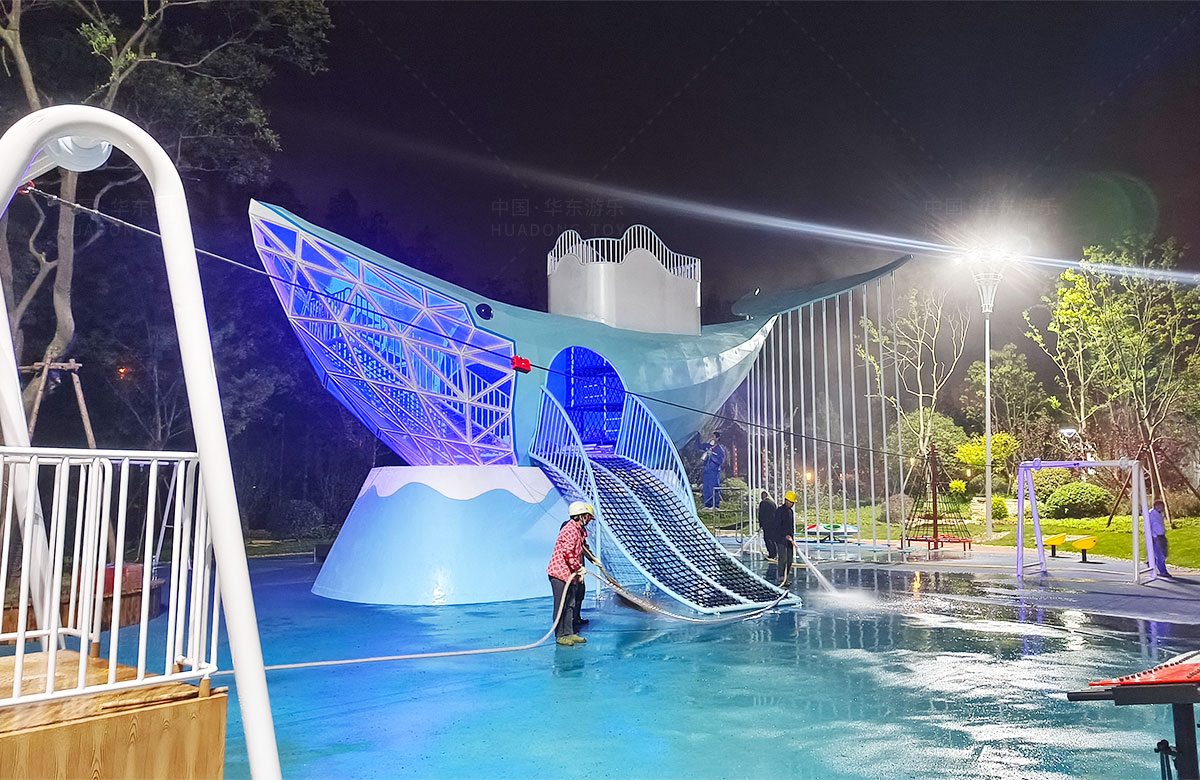 该项目选用的是304am永利游乐自主研发和生产的鲸鱼主题系列的非标定制游乐设备,设计了具有攀爬网、钻洞、空中滑索、打击乐器、旋转椅等功能设备,卡通的造型,完善的功能深受小朋友们的喜爱。