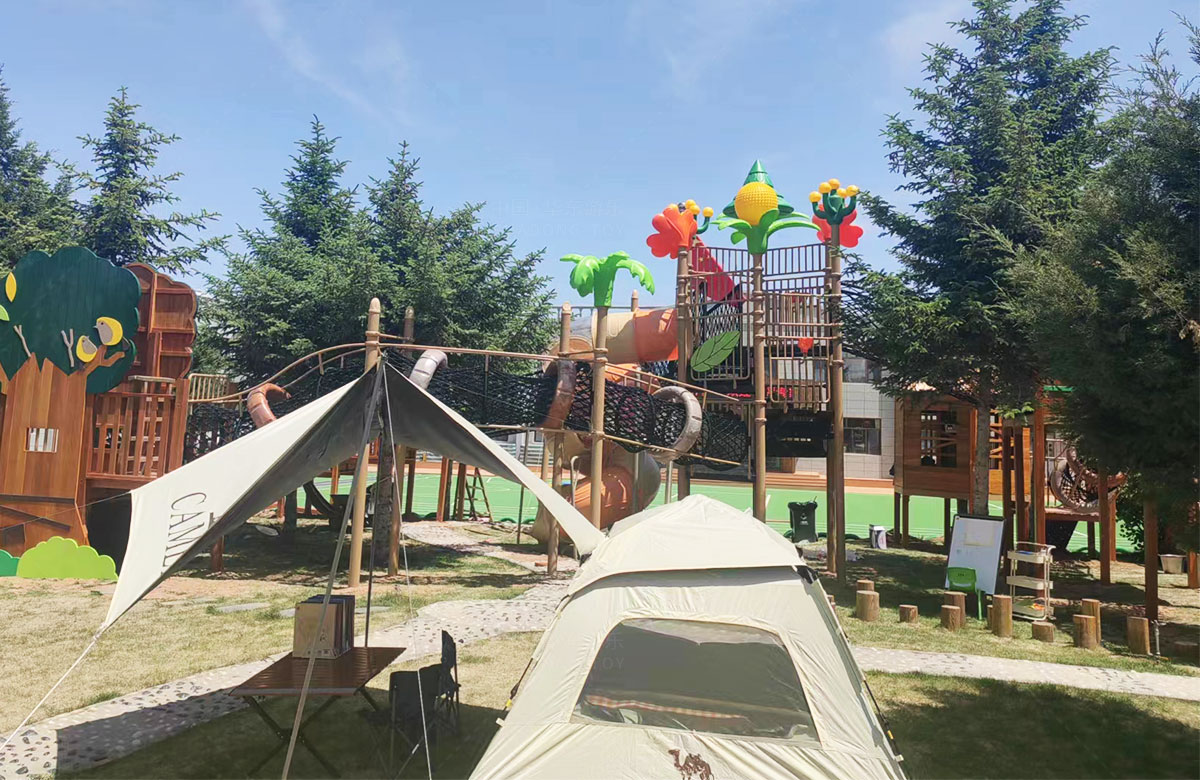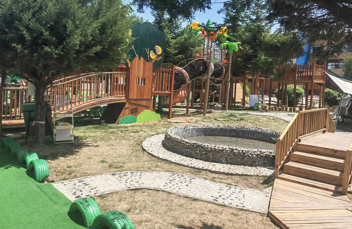 该幼儿园是一个专业性的学前教育培训机构,选用的是304am永利游乐自主研发和设计的具有空中攀爬网、钻洞、空中栈道、游戏小屋、直行滑梯为一体的综合性 游乐设备,这些设备的选择不仅仅丰富了孩子们校园的生活,还很好的锻炼了小朋友的攀爬能力、四肢的协调能力、攀爬过程中的平衡能力,同时也促进了孩子们大小脑的发育。