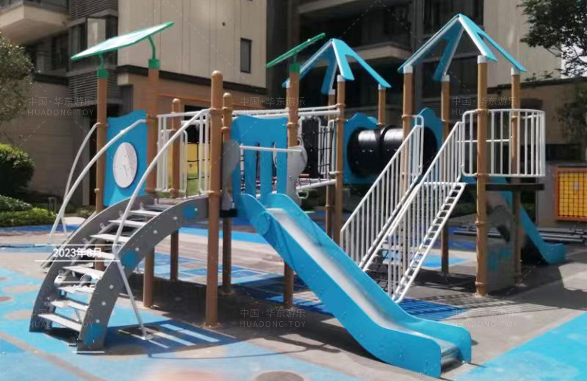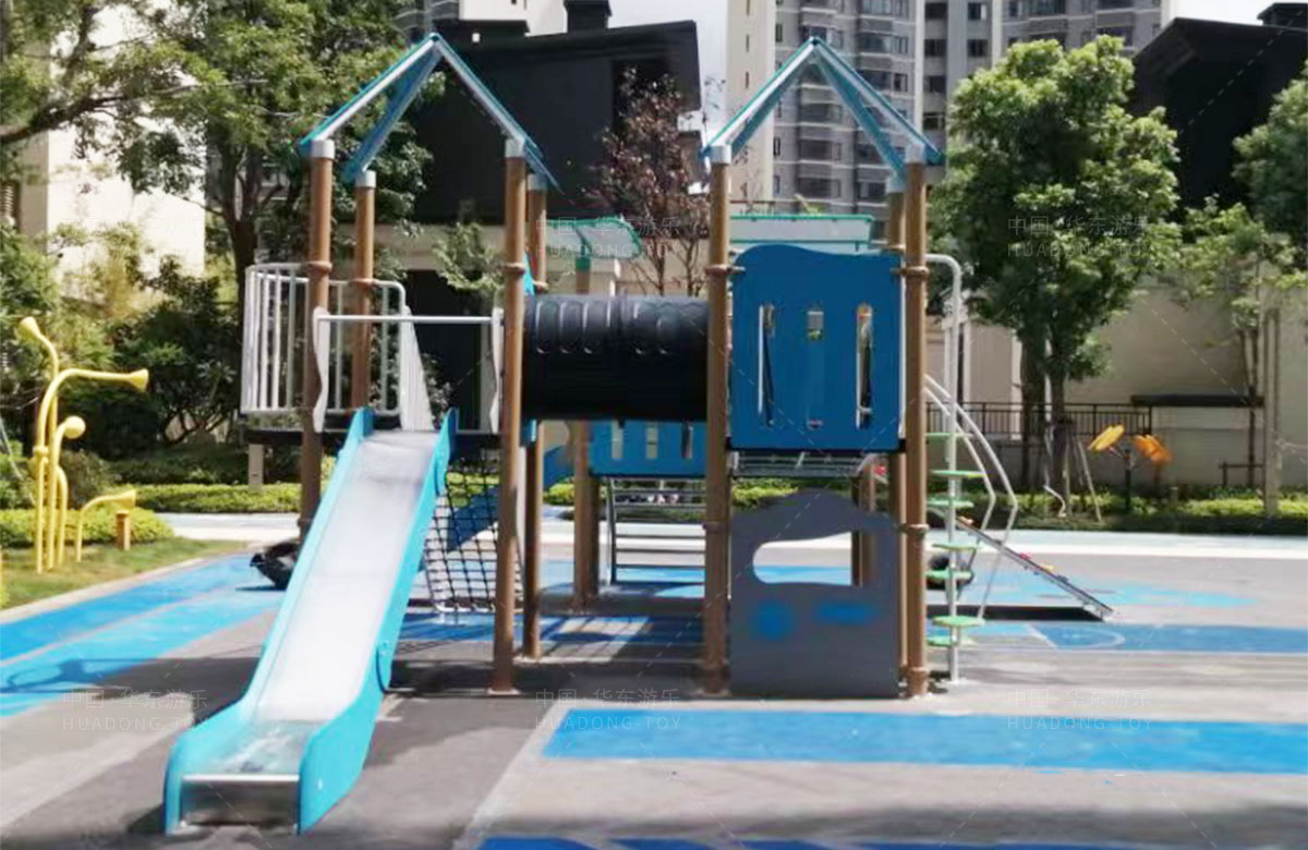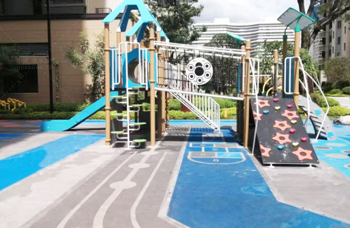该项目选用的是304am永利游乐自主研发和设计的PE板系列组合滑梯,该滑梯是一款具备了攀爬墙、攀爬网、攀爬梯、空中网桥、不锈钢滑梯等功能为一体的综合性游乐设备,除此之外还设置了小朋友喜欢的传声筒、攀爬墙、翻翻乐和成年健身器等设备,不仅丰富人们的休闲生活,也为该小区增加了更多的生机与活力。