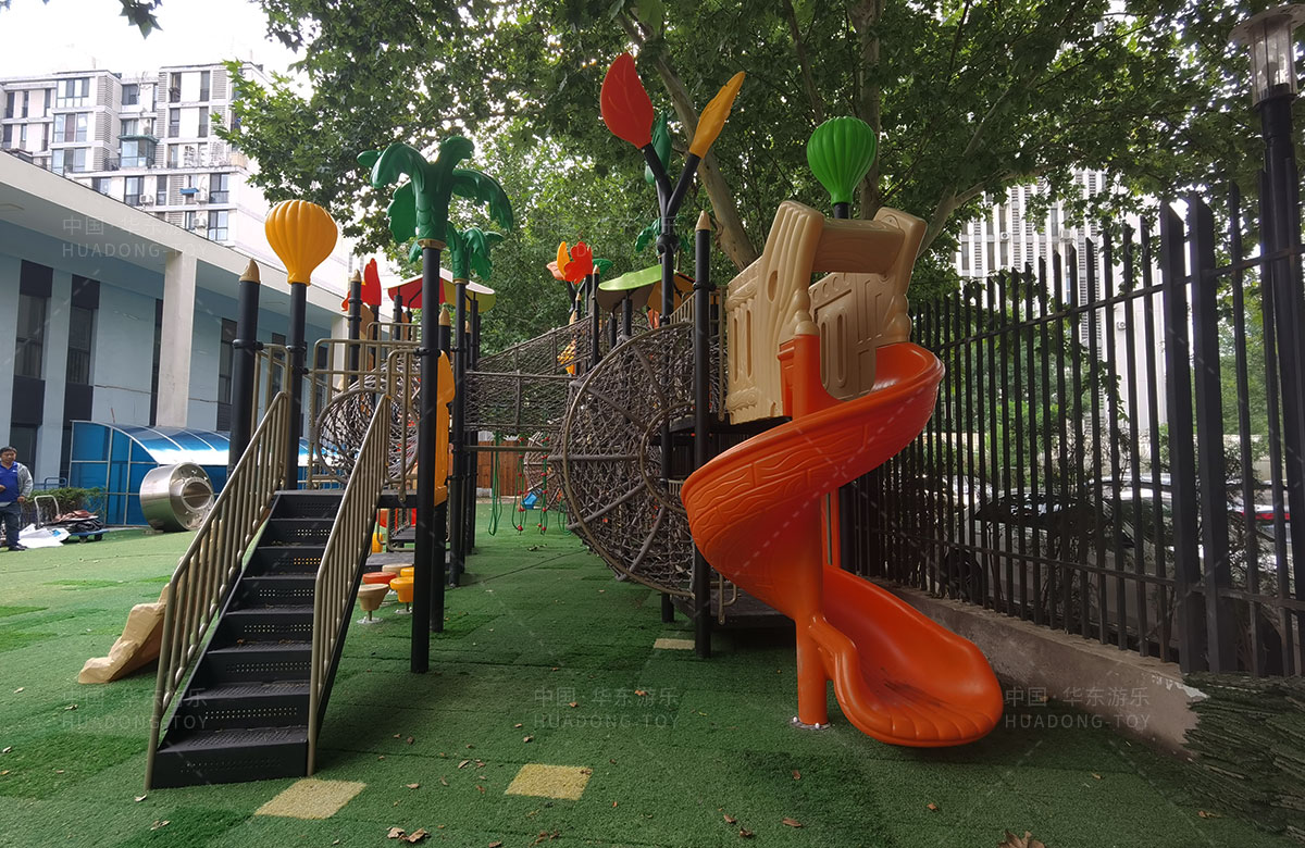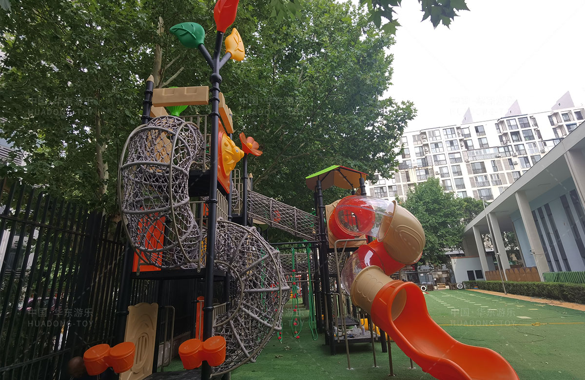 北京市朝阳区管庄忠德幼儿园选用的是304am永利游乐自主研发和设计的大自然系列组合滑梯,该滑梯是一款具备了攀爬网、钻洞、滑梯、丛林拓展、拍拍鼓、攀爬墙、固定踏踏车、平衡桩等功能为一体的综合性 游乐设备,能够很好的锻炼小朋友的全面发展。