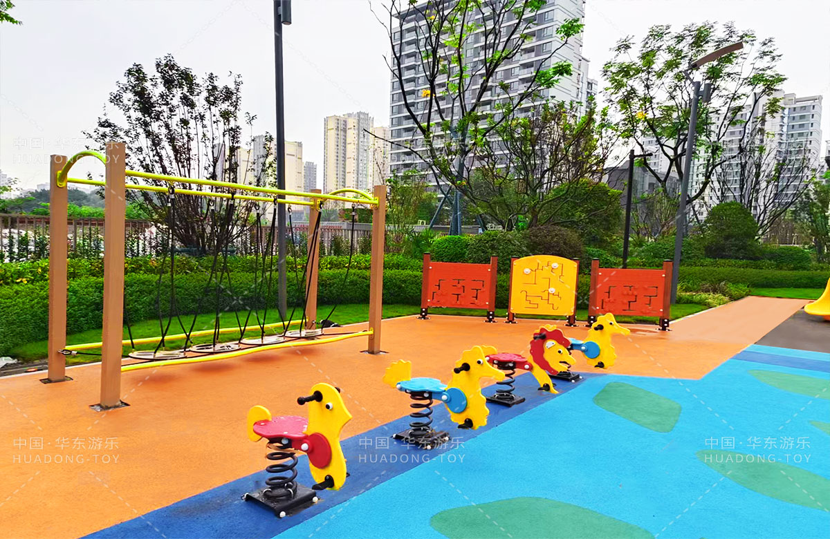 四川省成都市新城林屿溪选用的是304am永利游乐自主研发和设计的非标定制系列的游乐设备,为了更多让小朋友们有一个玩耍的场地,整个游乐场分别设计了儿童摇摇乐、儿童秋千、成人健身器、趣味迷宫、平衡吊桥、旋转椅、象鼻组合滑梯等游乐设备。