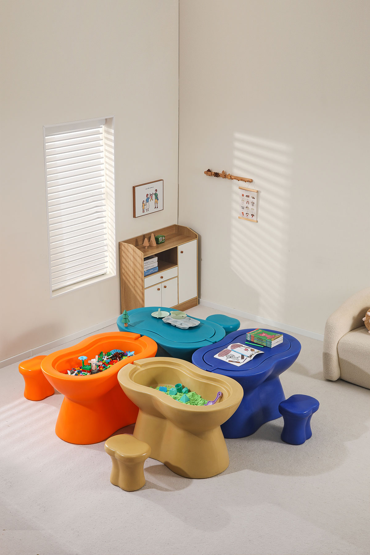 最值得一提的是,这款游戏桌还创新性地融入了戏水池和沙池的功能。戏水池和沙池的设计精巧,大小适中,既保证了孩子们玩水的乐趣,又避免了过多的空间占用。同时,戏水池和沙池的材质也同样采用安全环保的材料,让孩子们玩得开心,家长们放心。