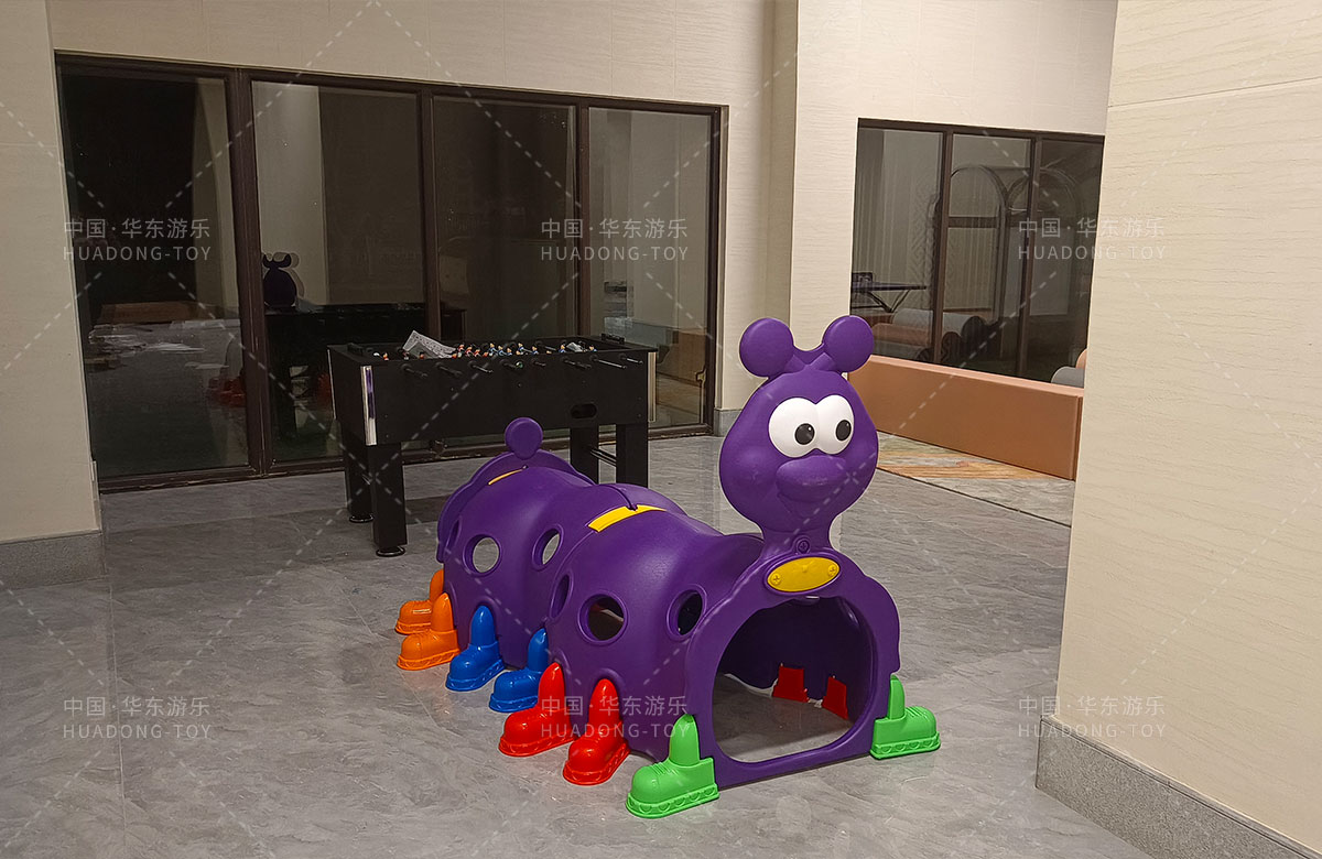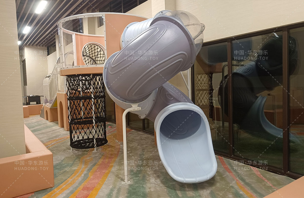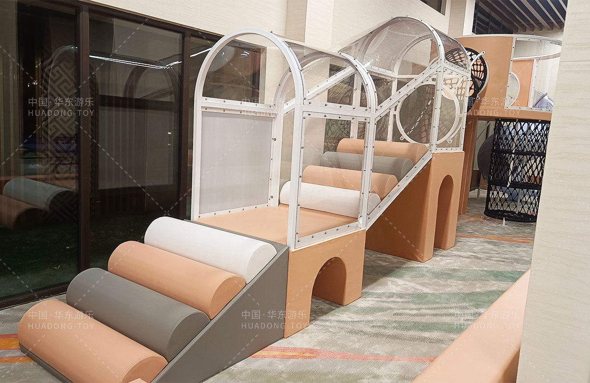该项目选用的是304am永利游乐生产的室内淘气堡系列产品,整套设备集合了攀爬网、钻洞、攀爬梯、旋转滑筒等功能,除此之外还设置了小朋友们喜欢的毛毛虫钻洞,儿童台球、乒乓球、桌面足球等设备,让整个售楼处变得更加的充满生机与活力。