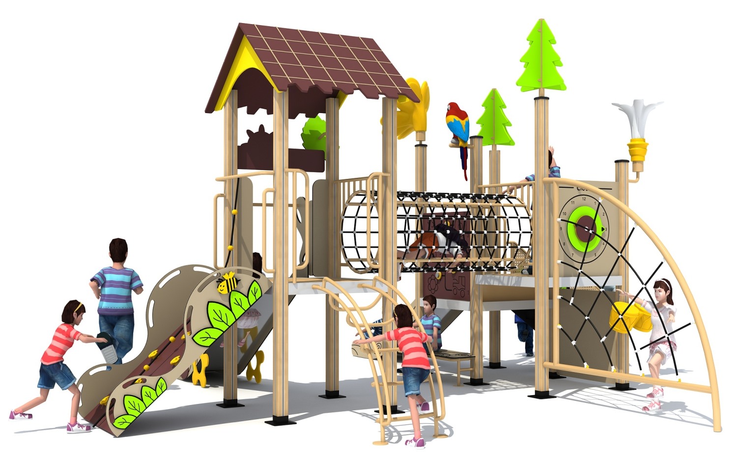 • 塑木系列组合滑梯采用环保塑木材料,结合创意设计,打造出既安全又富有乐趣的儿童游乐设施。该系列滑梯色彩鲜艳、形态多样,能够满足不同年龄段孩子的玩耍需求。其结构设计稳固,表面光滑无锐角,确保孩子们在尽情嬉戏的同时,享受到全方位的安全保护。塑木材料还具有良好的耐候性,经久耐用,是幼儿园、公园等儿童游乐场所的理想选择。