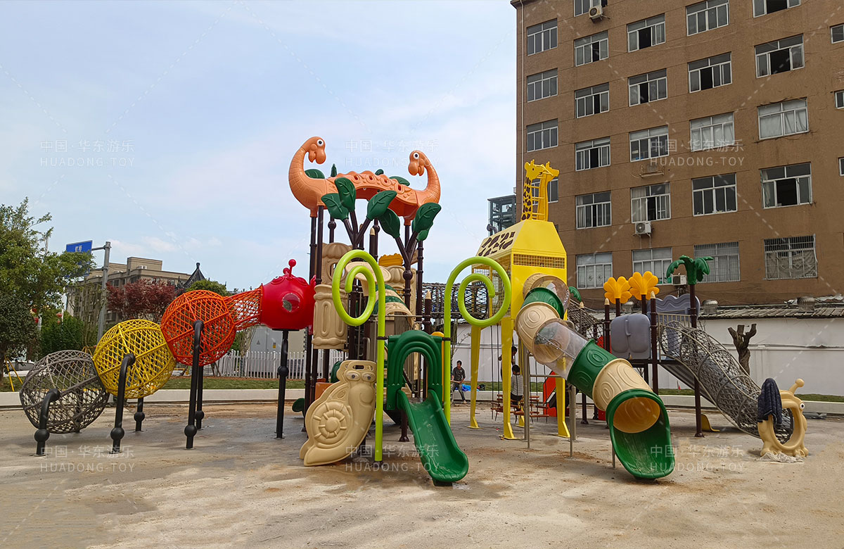 乐清市溪西工业园区休闲文化生态园是一个免费的文旅公园,主要为生活在这里的人群提供一个休闲、娱乐、遛娃、健身的场所,在该项目中选用的的304am永利有了自主研发和生产的动物系列组合滑梯,该滑梯具有功能齐全、玩法多样、颜色艳丽等特点,除此之外还新增了儿童 摇摇乐、组合秋千、跷跷板、打击乐器、脚踏旋转座椅等游乐设备。