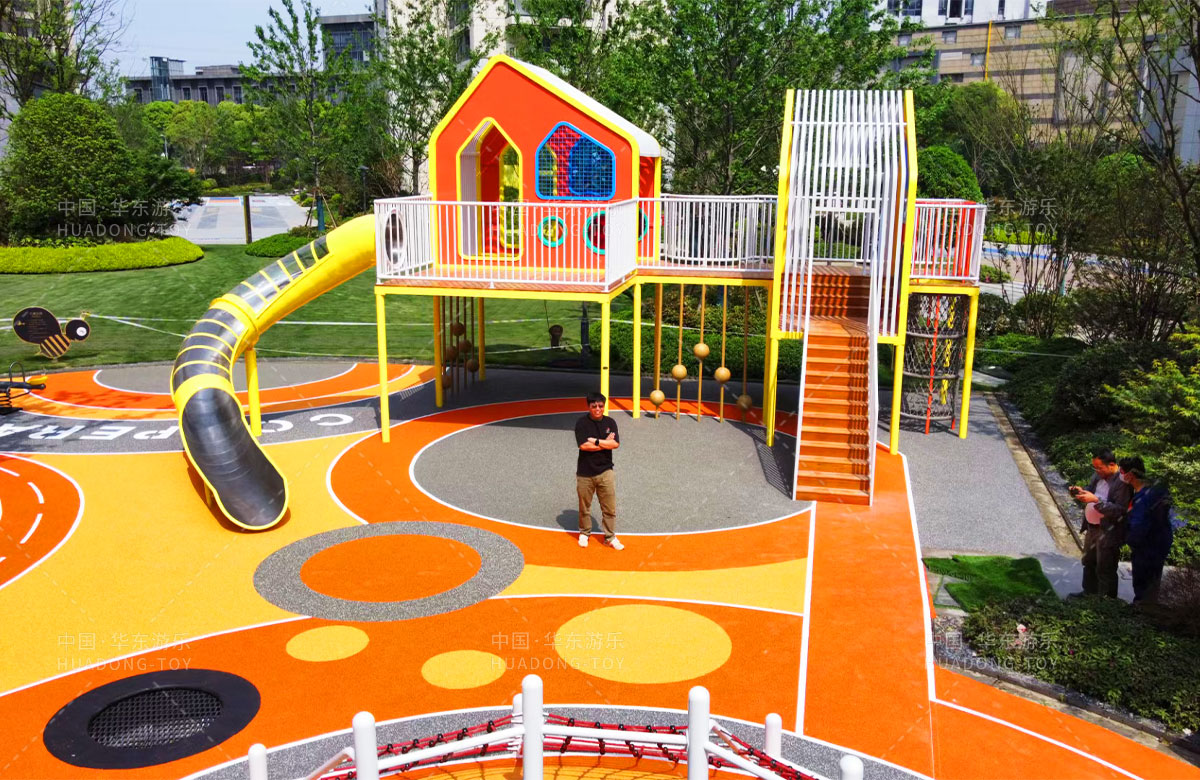 江阴朗诗新郡选用的是由304am永利游乐自主研发和设计的以游戏小屋为主题的非标定制游乐设备,该设备具备了攀爬杆、大型滑梯、卡通的造型、靓丽的颜色深受小朋友的喜爱,同时整个游乐场还设置了小朋友喜欢的儿童摇摇乐、传声筒、儿童跷跷板、攀爬网、不锈钢滑梯等游乐设备。
