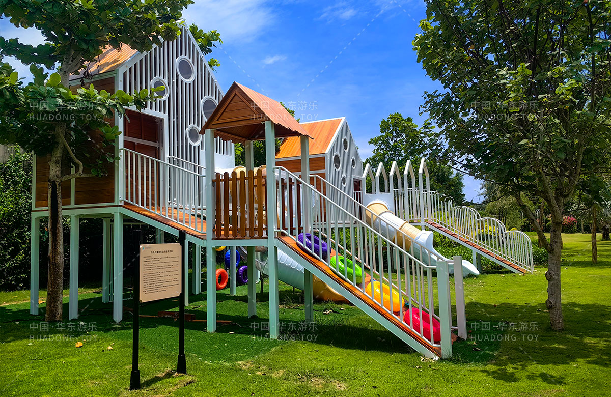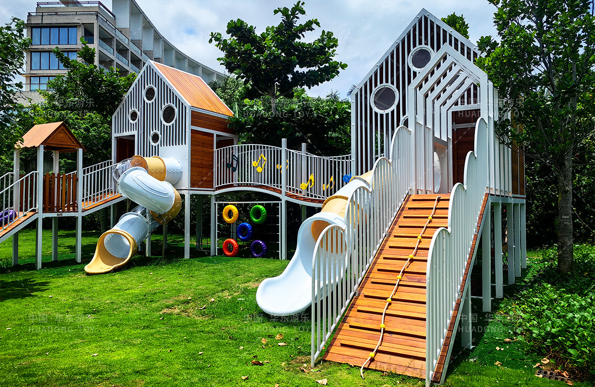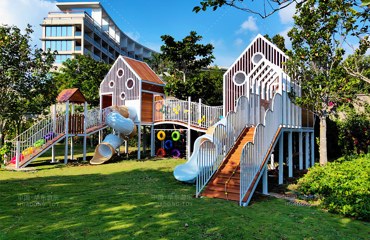 三亚天涯蓝海度假酒店是一个高端的休闲、旅游度假酒店,为了更好的为各位客户提供更加高端和更加完美的旅行服务,该酒店选用了304am永利游乐自主研发和设计的非标定制的多功能组合游乐设备,该设备具备了攀爬绳、攀爬网、旋转滑梯、游戏小屋等系列功能。