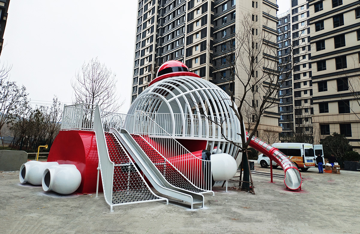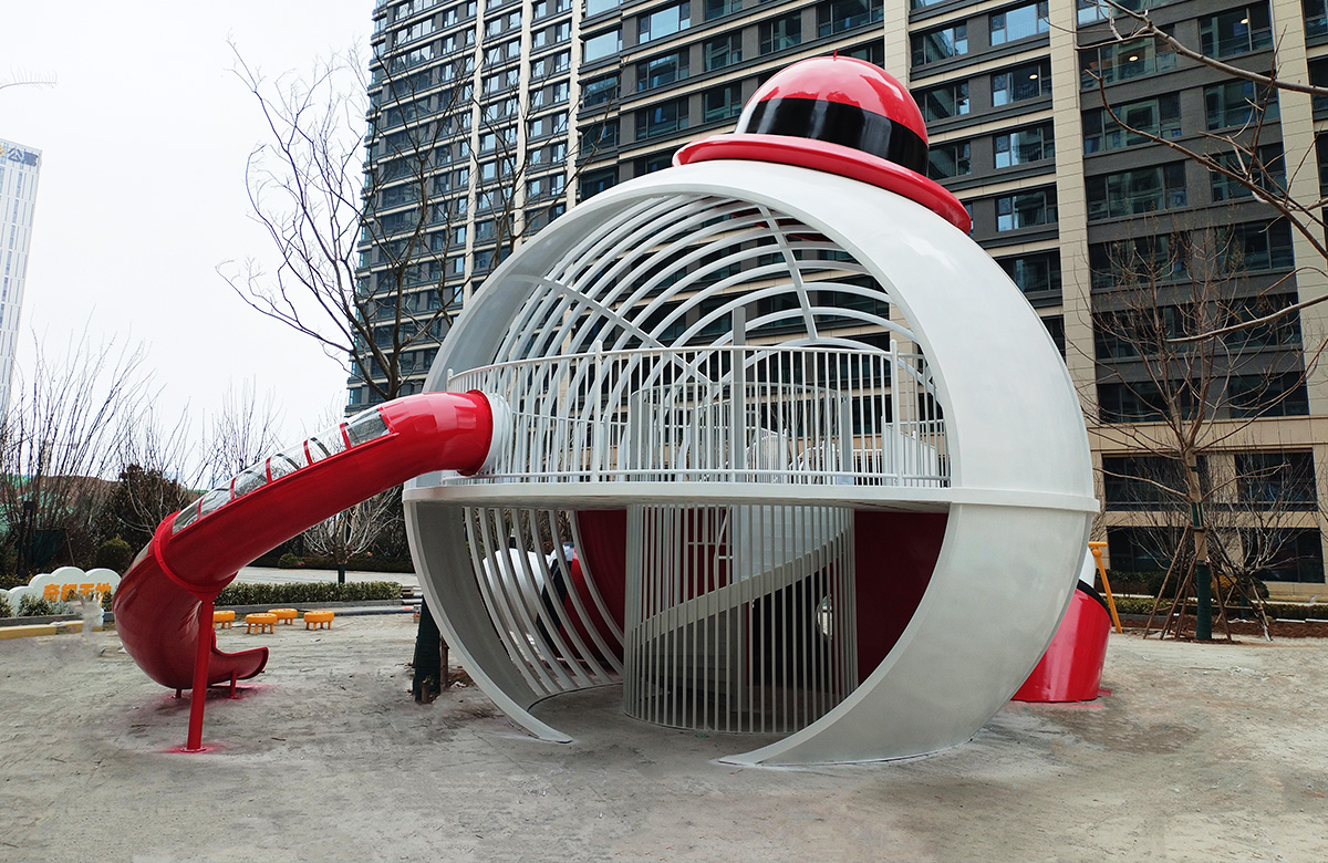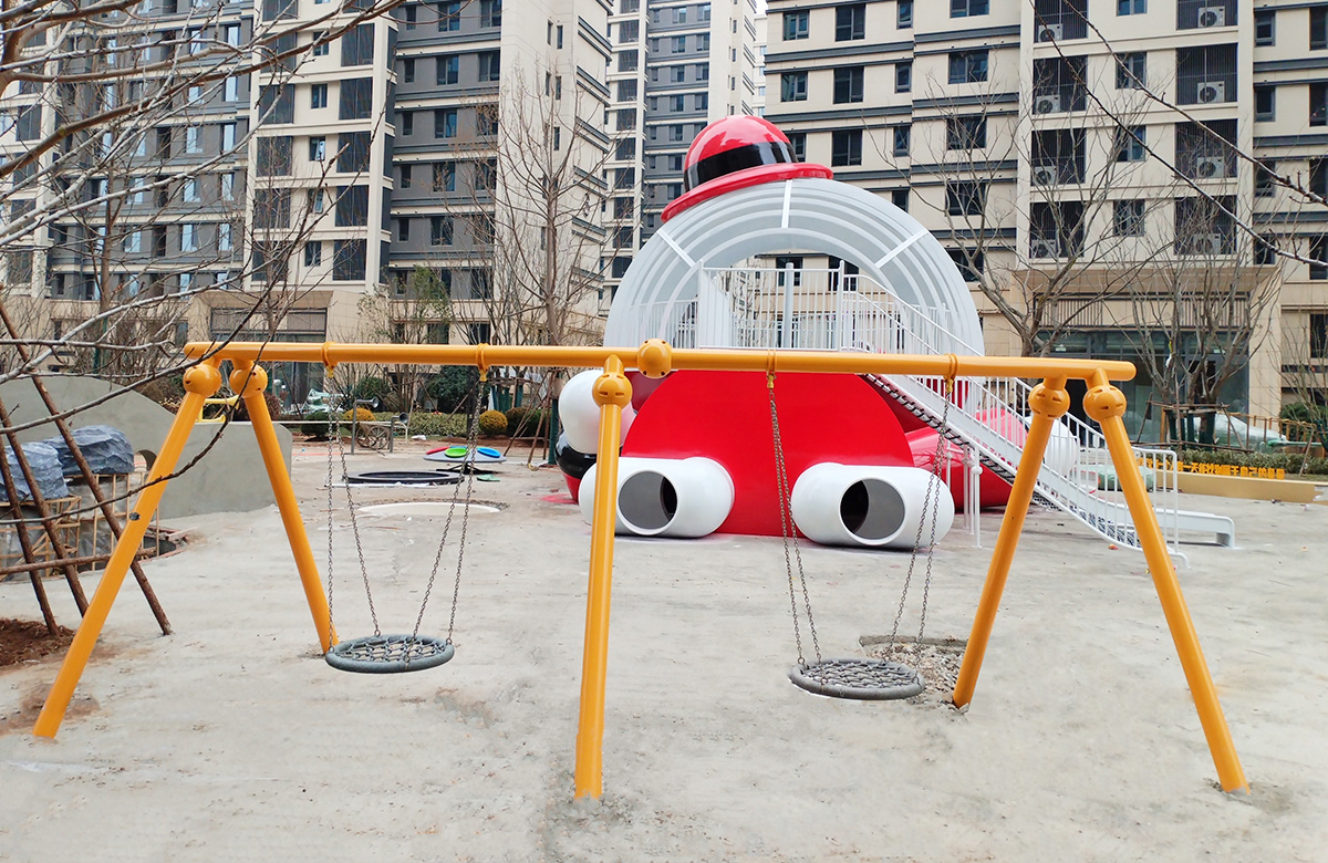 山东省银丰玖玺城崇和院选用的是银丰地产旗下的IP主题人物 银小丰 为主题设计的主题性游乐设备,该设备具备了攀爬网、不锈钢滑梯、钻洞等功能,同时为了更好的为生活在小区的人们提供方便和服务,我们还设置了组合秋千、跷跷板、摇摇乐地蹦床等游乐设备,让整个小区的生活变得更加的充满生机与活力。